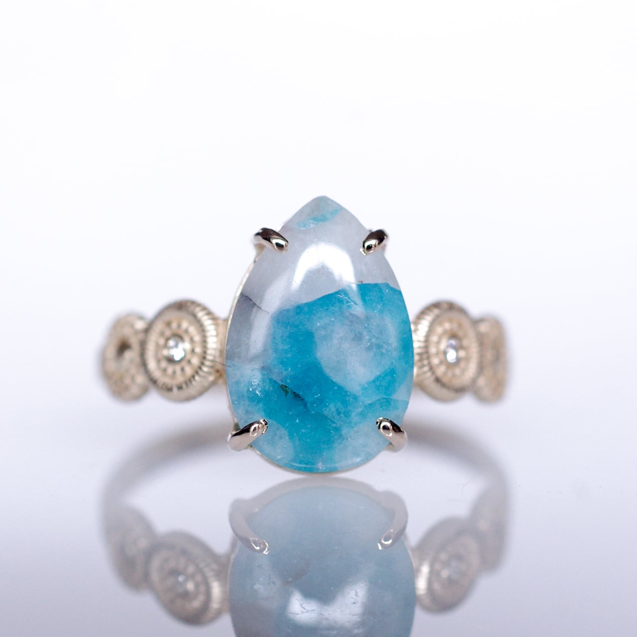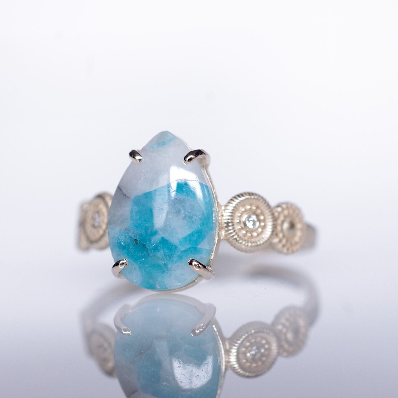 パライバトルマリンインクォーツとダイヤモンドのK10製、1点ものリングです。