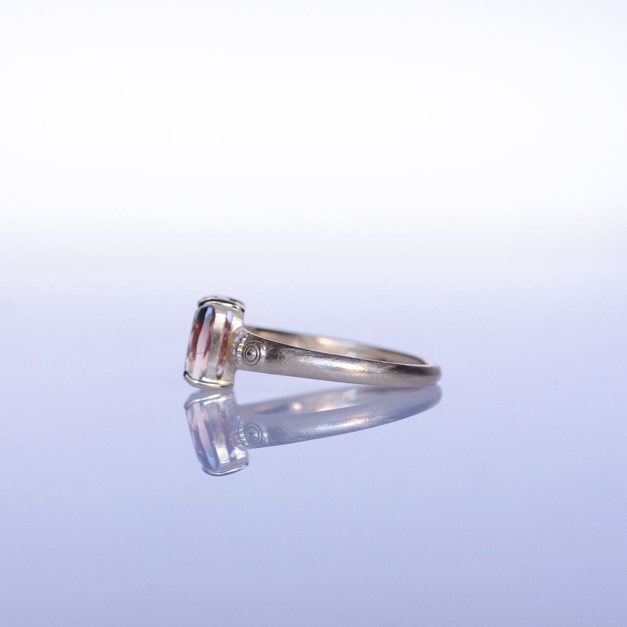 オレゴンサンストーンとダイヤモンドのK18製、1点ものリングです。