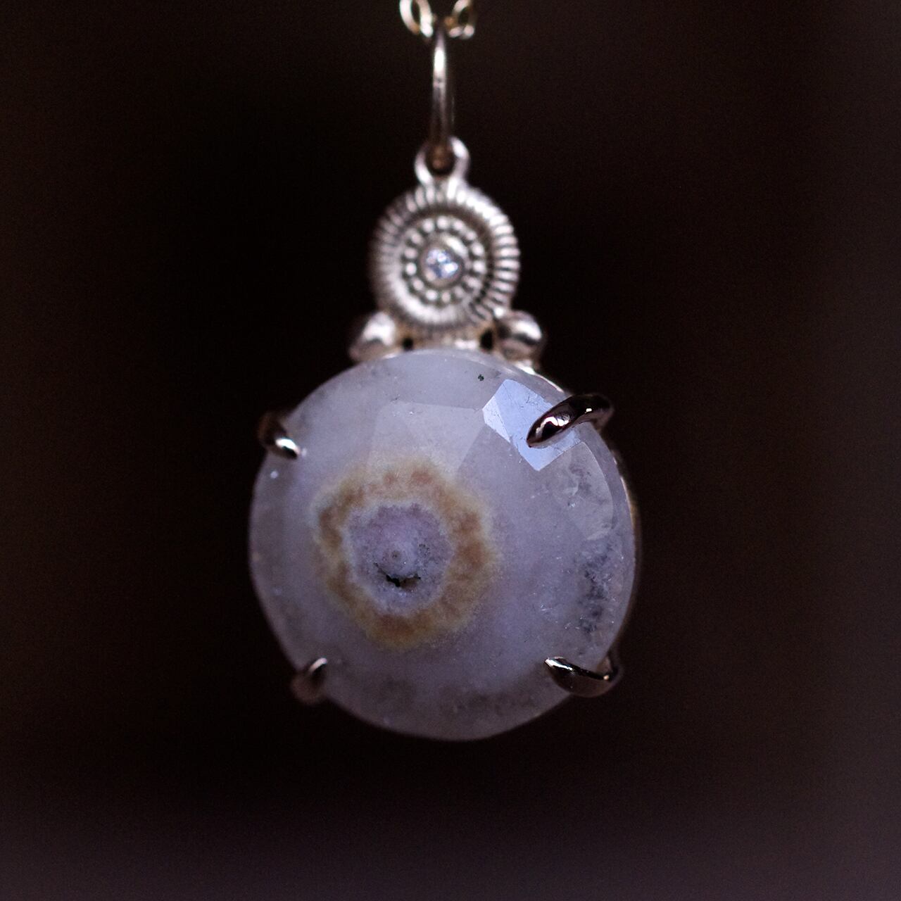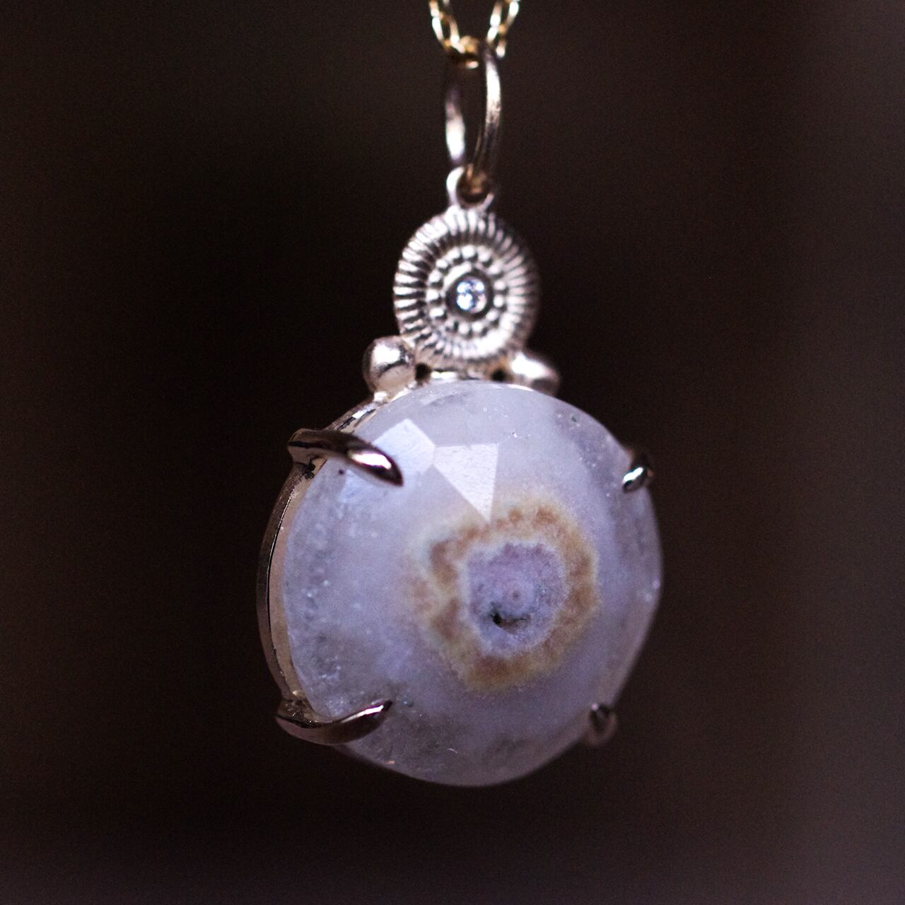 中心となるアゲートから放射状に結晶が育った水晶。自然が作り出した神秘性と力強さを感じられます。