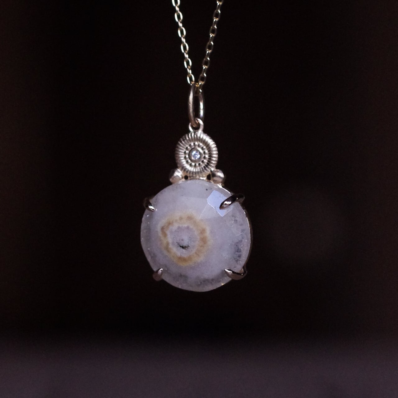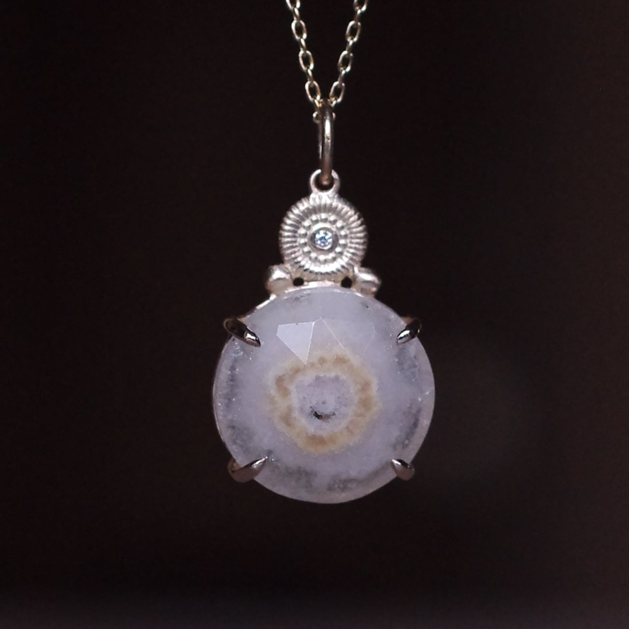 ソーラークォーツとダイヤのK10製、1点ものネックレスです。