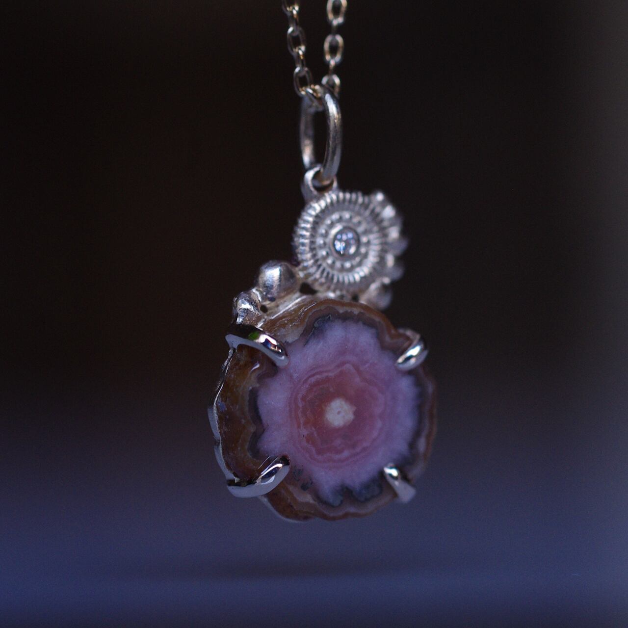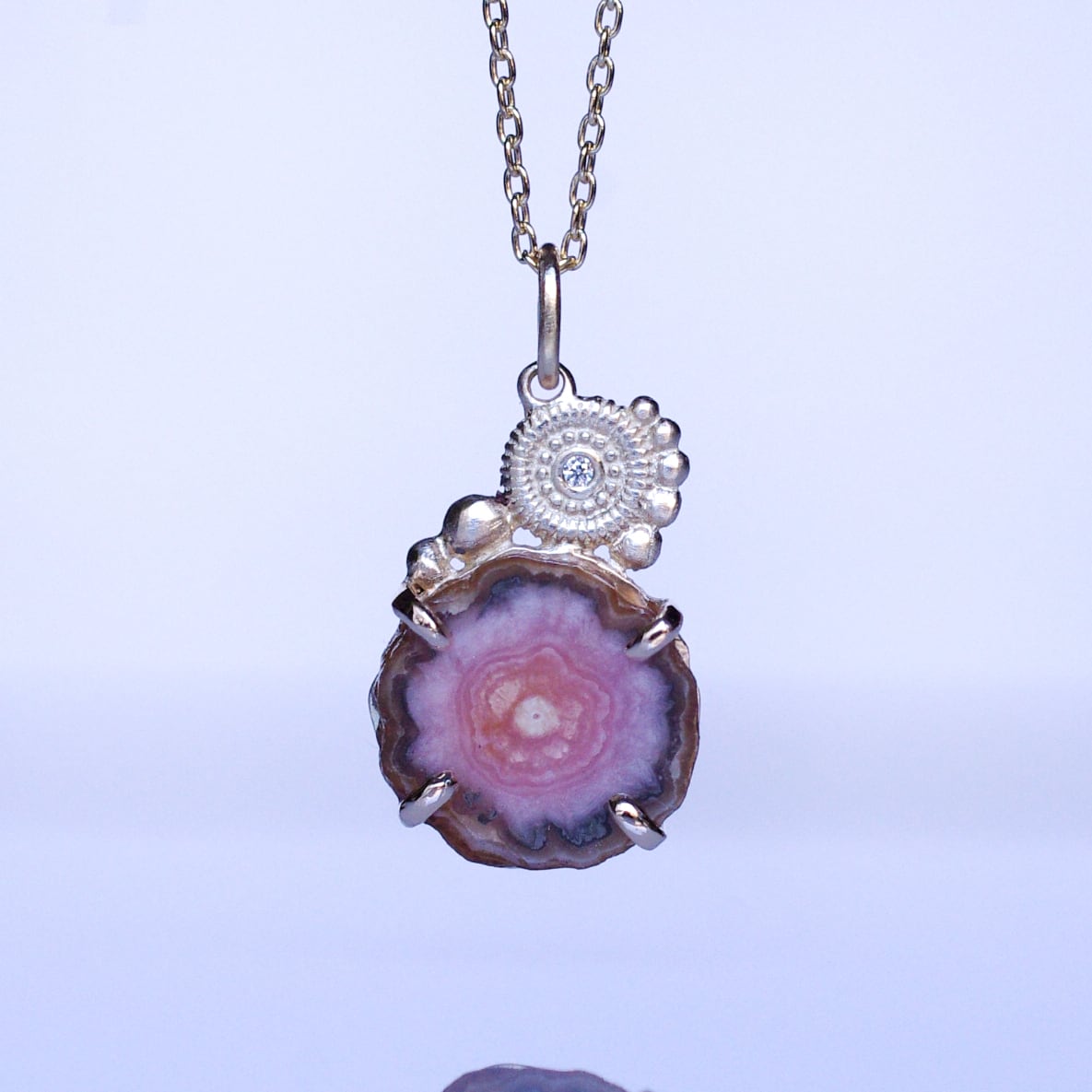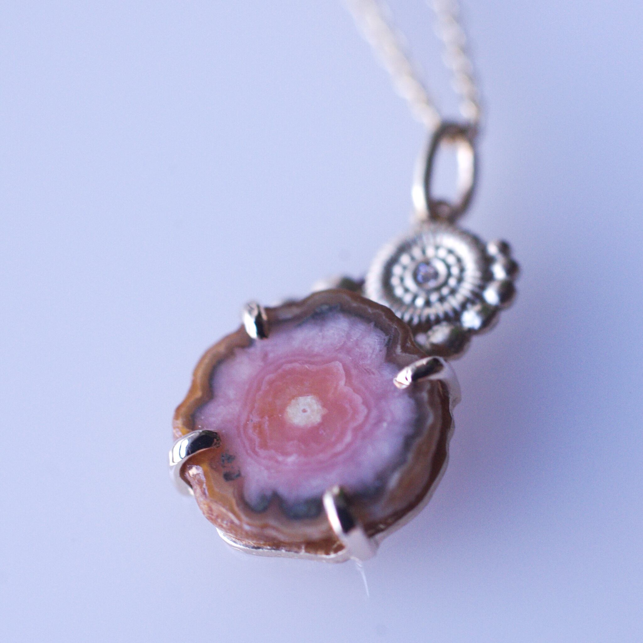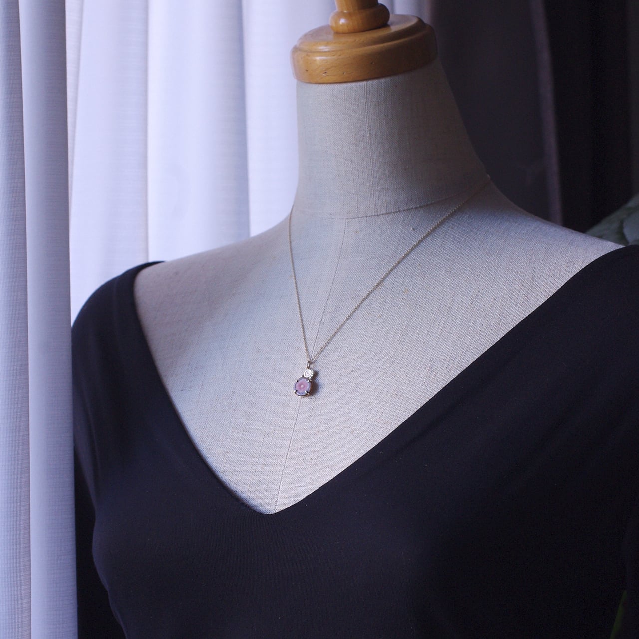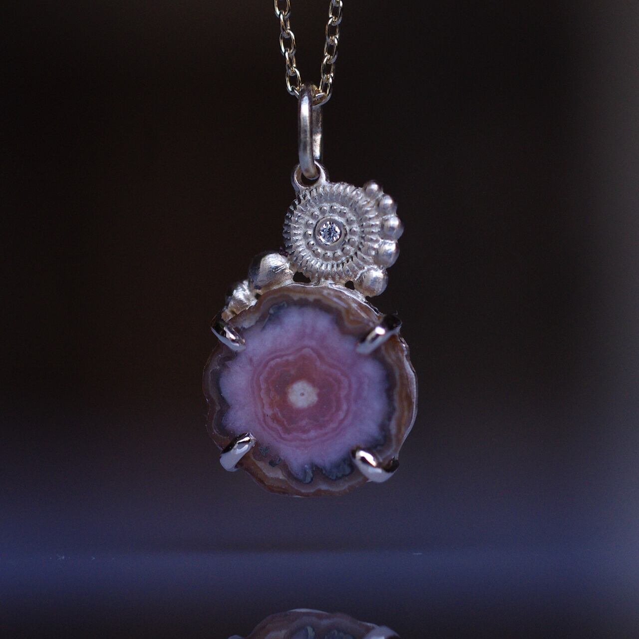 インカローズとダイヤのK10製、1点ものネックレスです。