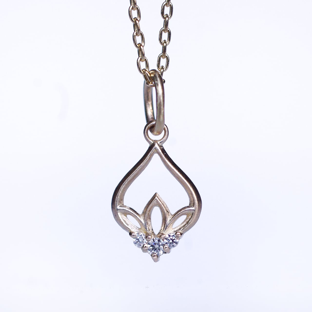 【HASU(ハス)】と名付けたデザインシリーズのK10製ダイヤモンドネックレスです。