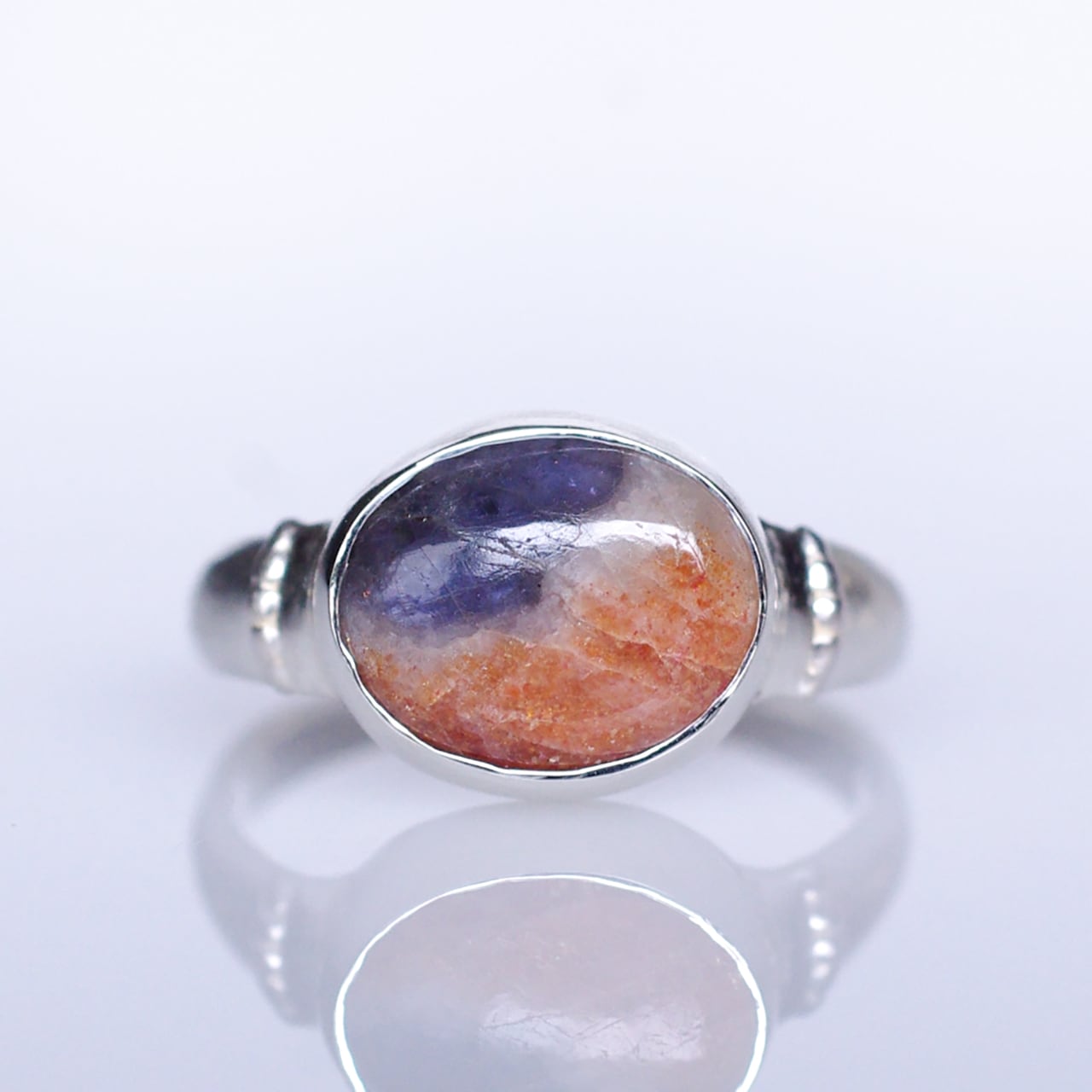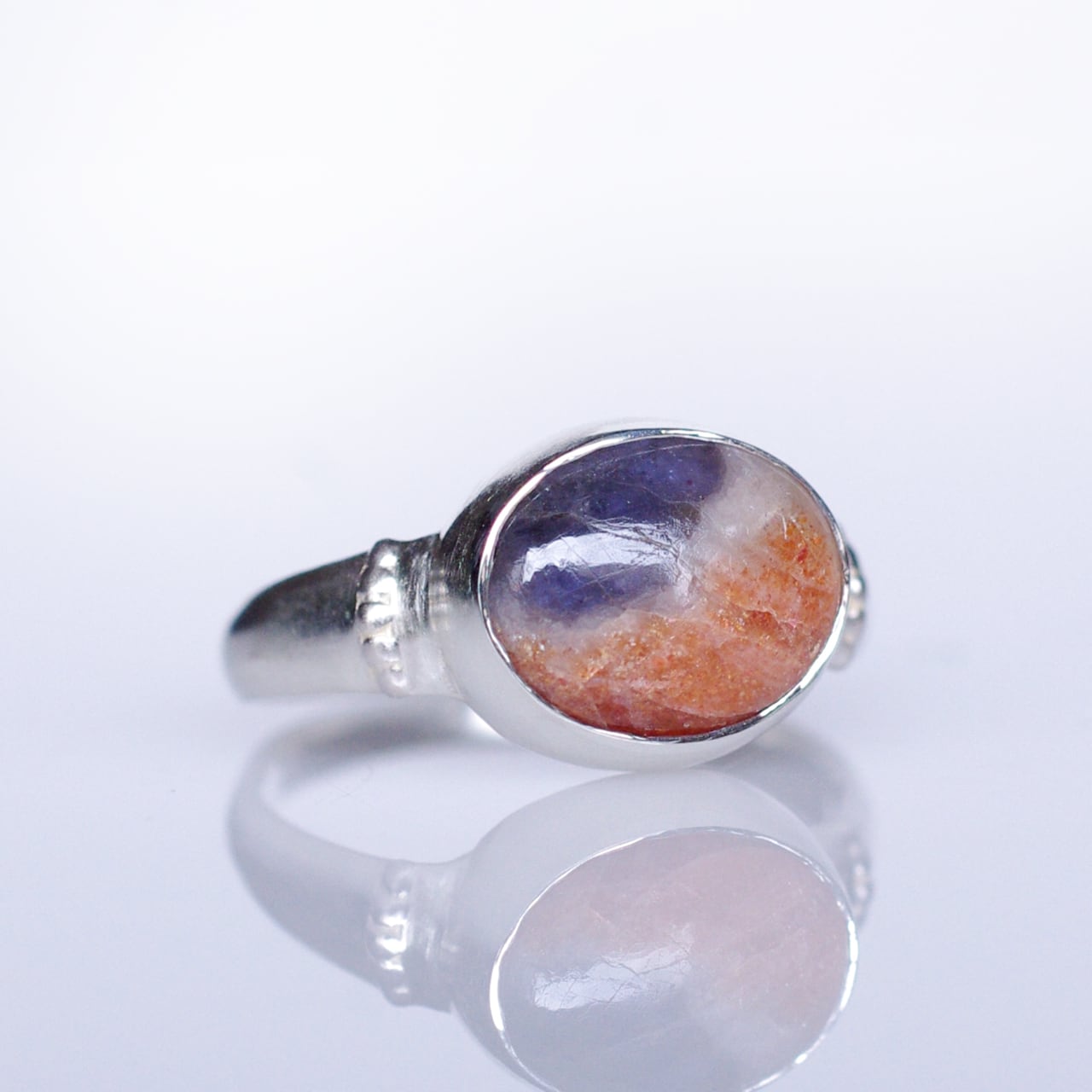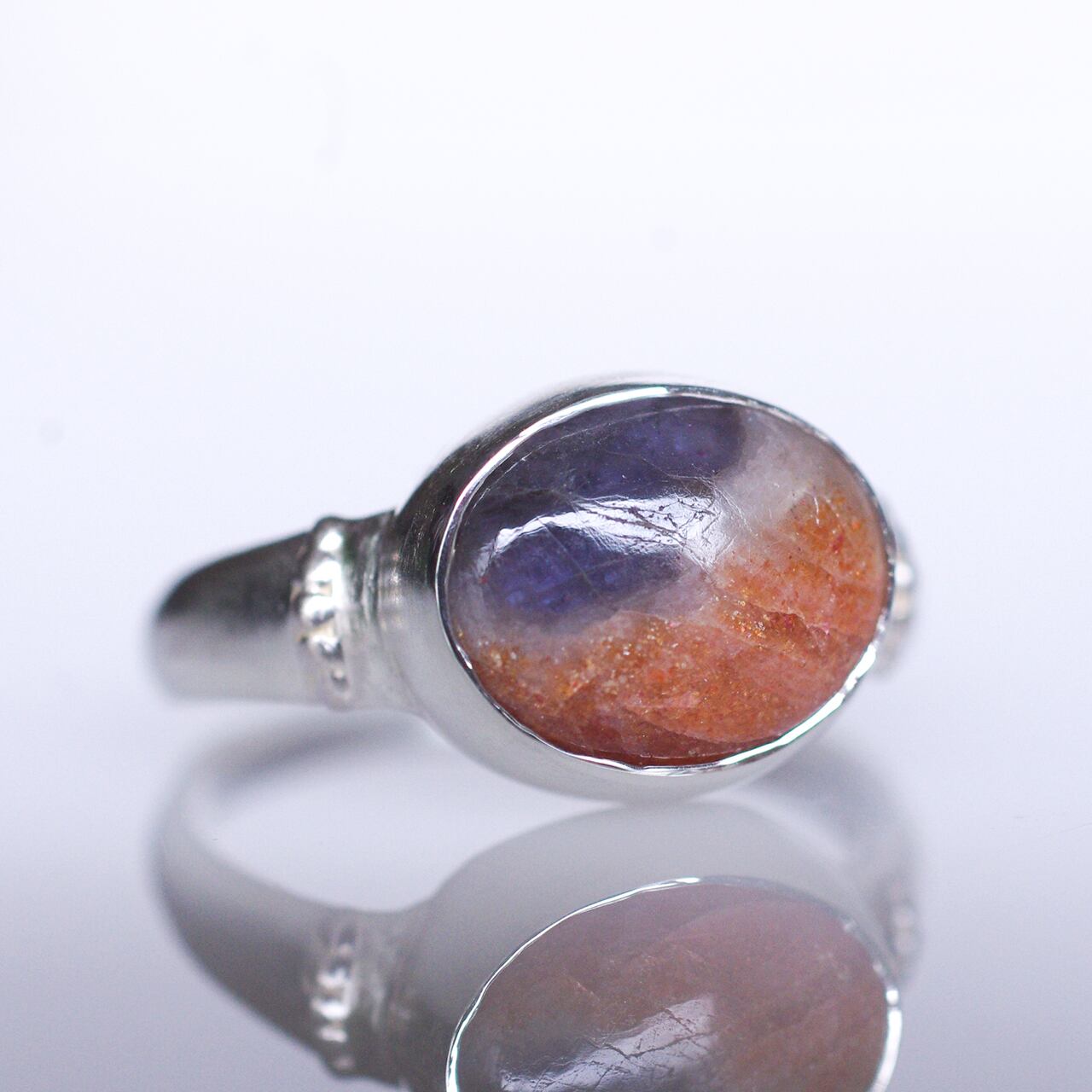 アイオライトサンストーンのSilver製、1点ものリングです。