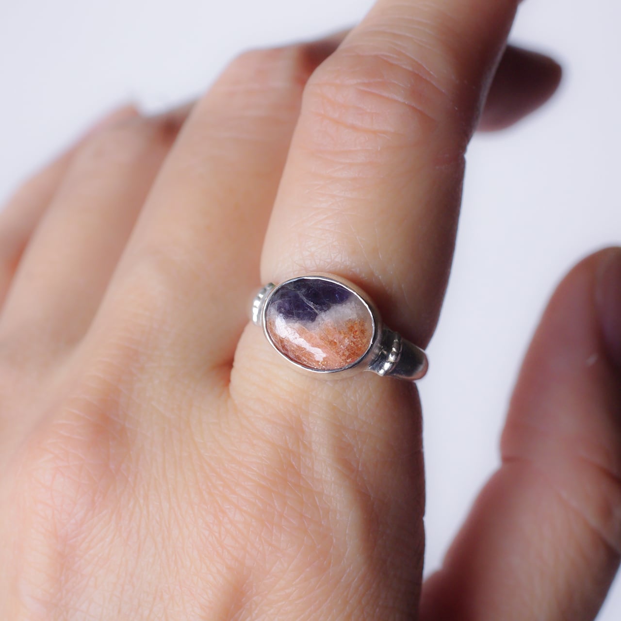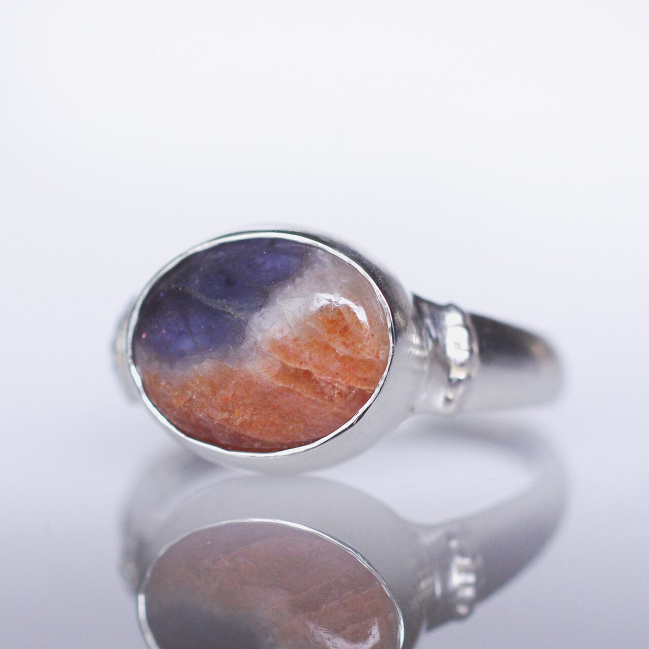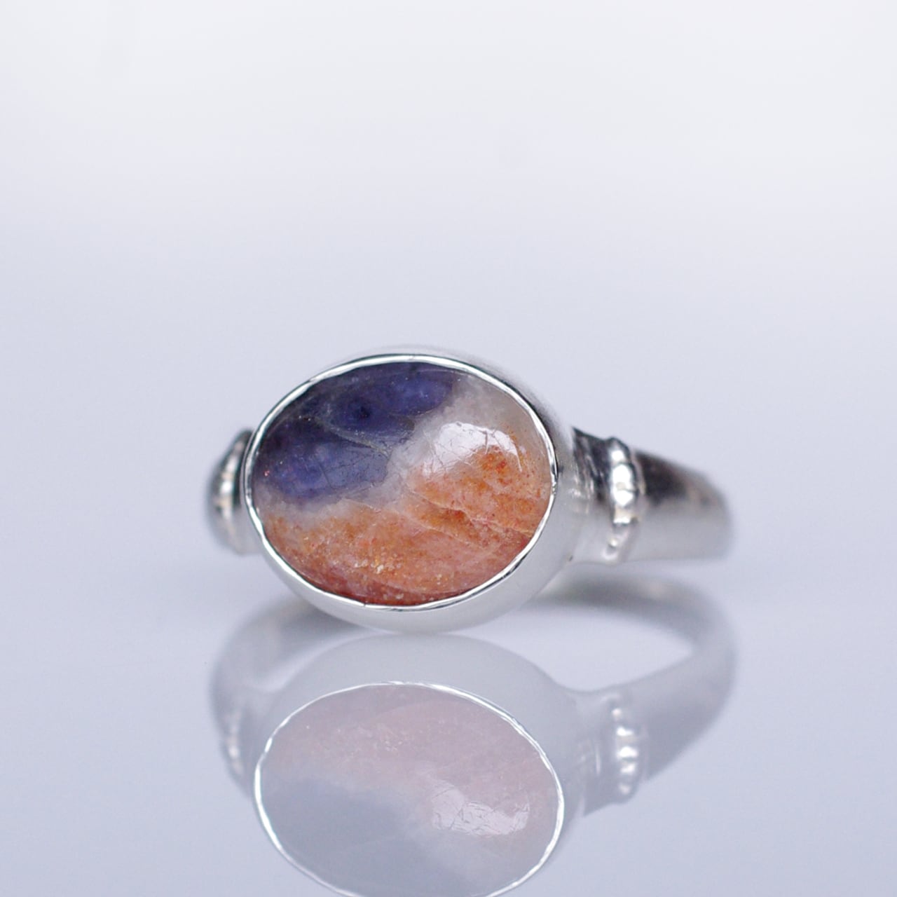 アイオライトサンストーンのSilver製、1点ものリングです。