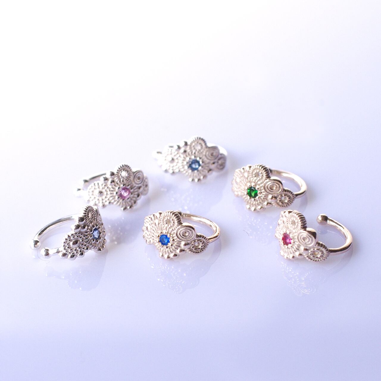 キラリと輝く色石は小粒ながらそれぞれの魅力がしっかりと際立ってます。