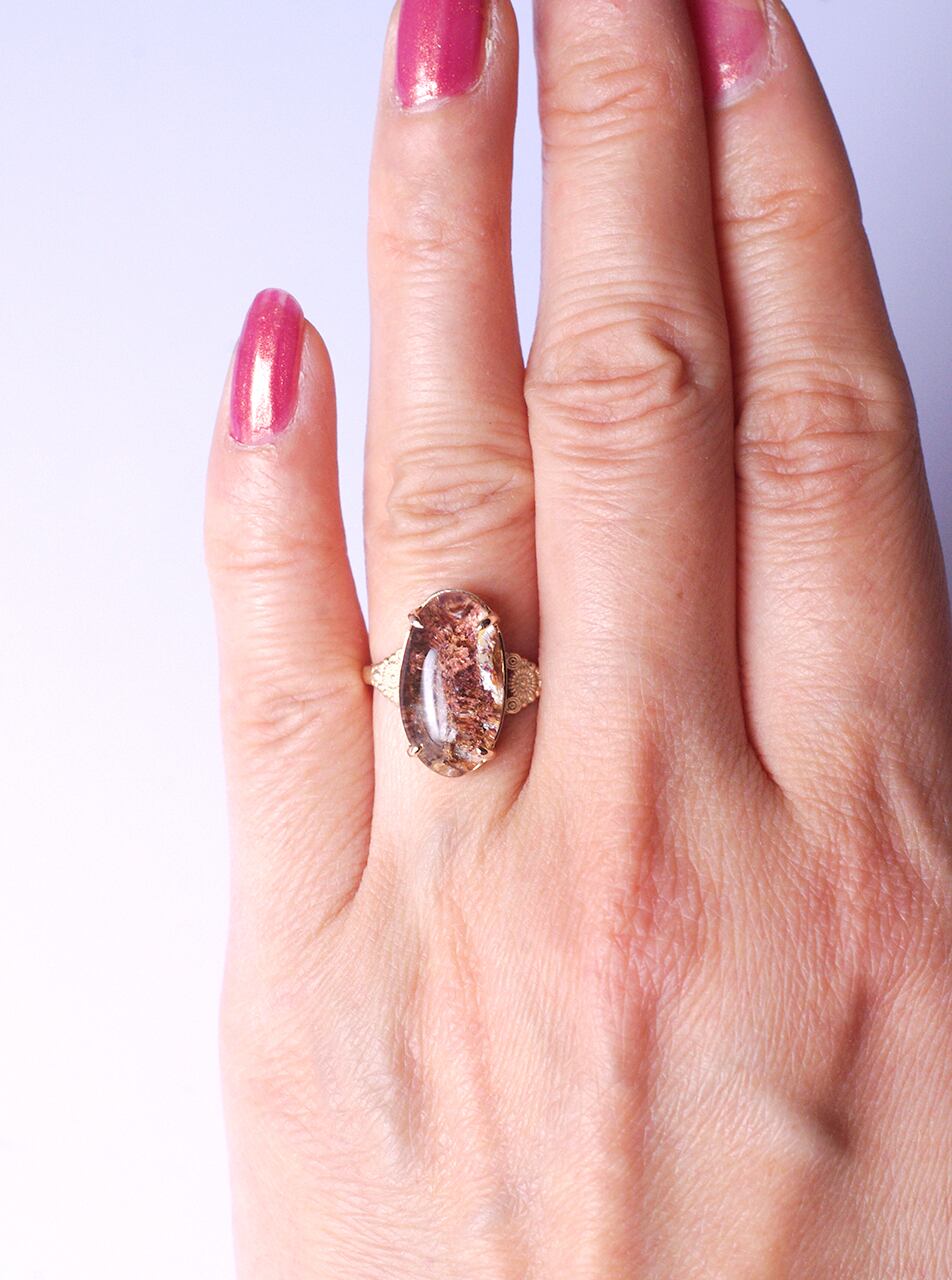 ガーデンのような自然の内包物が入り込んでいるクォーツのピース。